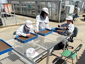 農業技術科農業科学コース草花専攻班3年生で行っている春の実習で、コリウスやベゴニアなどをポットに上げていきました。また、2年生では生育の早いマリーゴールドの播種を行いました。丁寧にトレイに土を敷き詰め、種が重ならない様に慎重に播種を行いました。暖かくなったら花壇を綺麗に彩ってくれます。