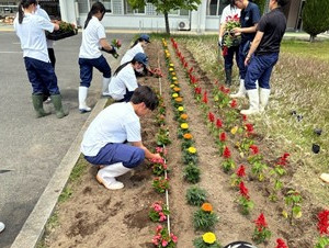 女性部の方々も真剣に説明を聞いてくださり,御自身の好きな花を選んで,各々アレンジしながら植栽していました。生徒にとって,とてもいい経験になりました。