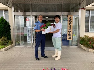 小牛田駅花壇植栽と警察署に花を寄贈