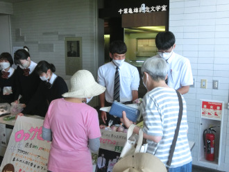 9月10日(土)から25日(日)まで小牛田図書館にて,図書館まつりが開催されています。農業科学コースからは野菜班が参加し,14日(水)に「図書館マルシェ」として,本校で栽培したロッサビアンコという西洋ナスを中心に野菜の販売を実施しました。