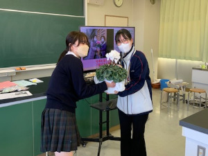 事前に花苗の紹介パネルを作成し、司会・進行そして手順の説明をすべて生徒が行いました。とても緊張した様子でしたが、女性部の方々と一緒に寄せ植えを作り、上手にできたと喜んでもらえたのでとても良かったと思います。
