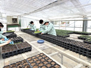 野菜苗販売に向けて生徒の栽培管理風景