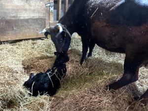 本校畜舎ではベビーラッシュになっています。4月23日(日)の夕方から『かなひら号』の出産がありました。産まれた仔牛の名前は『大吉』、母牛の母乳をたくさん飲んですくすくと成長しています。
