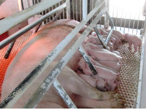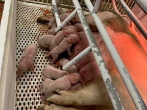 同じ日に、豚の出産もあり、14頭の仔豚たちが母豚の周りを走り回っています。さらに、4月25日(火)にも、別の母豚が出産。こちらは20頭の仔豚たちが母豚の母乳を飲みすくすくと成長しています。