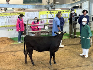 5月15日(水)、本校にて飼養管理してきた「すぴか号」を出荷しました。市場の関係者や他の農家さんから発育良好できれいな牝牛と講評を頂きました。