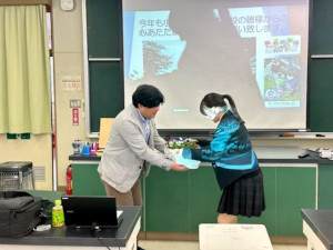 5月7日(水)に農業技術科農業科学コース2年生40名は東京農業大学教授・高畑健氏をお招きし、「科学的データの取り方について」というテーマのもと授業を受けました。御自身が研究している「ペピーノ」を題材にし、テーマ設定の重要性や科学的根拠をデータ集積について御講話いただきました。