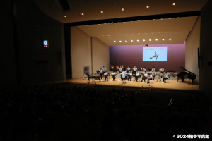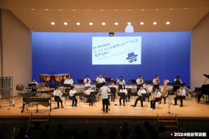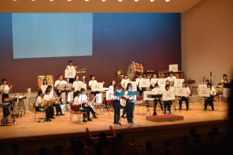 今年で4回目の開催を迎えた今回は、新たに美里中学校を会場に加え、複数会場で多くの企画が行われる中、今年度もオープニングアクト、美里中学校アリーナでのステージ発表にて演奏させていただきました。本校の単独ステージでは、「ジブリ・メドレー」「大きな栗の木の下で」「点描の唄」「ジャンボリミッキー」を披露させていただきました。