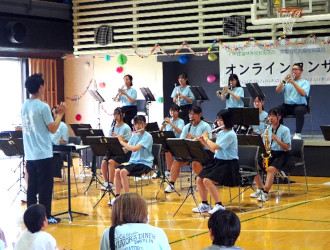 今年で4回目の開催を迎えた今回は、新たに美里中学校を会場に加え、複数会場で多くの企画が行われる中、今年度もオープニングアクト、美里中学校アリーナでのステージ発表にて演奏させていただきました。本校の単独ステージでは、「ジブリ・メドレー」「大きな栗の木の下で」「点描の唄」「ジャンボリミッキー」を披露させていただきました。
