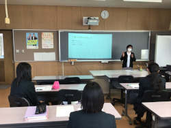 「私のライフプラン」とは、10年後の自分の理想の姿をイメージし、それに向けて今やるべきことを整理したものです。生徒一人一人が「私のライフプラン」をスライドにまとめ、各クラスで発表を行い、代表者を決めました。1月23日(金)には、オンラインで村田高校とつないで、本校と村田高校のそれぞれの代表生徒の発表会を行いました。同じ総合学科である村田高校さんの発表は、参考になることがたくさんあり、良い刺激をいただけました。今後も交流を続けていきたいと思います。