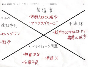 ③そして思考ツール(考え方を補助するためのツール)を用いて考えをポスターに整理し,発表し合いました。