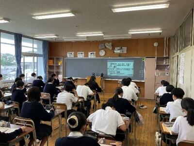 4月16日(火)5校時に、2年「総合的な探究の時間」のガイダンスが行われました。今年から始まる探究活動の目的とねらいについて、生徒たちは真剣に説明を聞いていました。今後、美里町をテーマに課題を設定し、グループ単位で地域探究を行っていきます。主体的・協働的に取り組み、互いのよさを生かしながら、新たな価値を見いだし、美里町をよりよいものにできるようなアイディアを考えていきます!