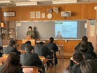 講話では、地域おこし協力隊のお仕事や美里町に対する思い、町の魅力についてお話を伺うとともに、生徒がグループごとに考えた質問を隊員の方に直接お訊きし、やりとりを行うことができました。今回の講話を通して、生徒は美里町に目を向けるきっかけを得ることができ、これから取り組んでいく探究活動への意識を高めることができました。