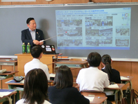 美里町まちづくり推進課より小林さんを講師にお迎えし、「美里町の魅力と南郷庁舎エリア再生プロジェクト」について講話をいただきました。本校所在の美里町を持続可能な活気ある町にするため、高校生ならではの柔軟なアイディアを生み出し提案していけるよう、今後の地域探究活動への意欲を高めました。