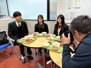 11月12日(水)に、美里町立美里中学校で、栄養教諭の先生と本校生徒が考案した「ぽこぽこちゃんこ」が提供されました。3年「総合的な探究の時間」の授業で、食を通して地域の若い世代へ伝統文化や伝統食を伝えることをテーマとしているグループが実践しました。