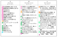 一人ひとりが10年後の「なりたい自分」の姿を思い描き,そのために必要な要素と具体的に取り組むことをマンダラチャート形式のワークシートに記入しました。その後,10年間を3つに区切り,それぞれの時期に自分が頑張っていくことについて具体的に考えました。生徒たちは苦戦しながらも熱心に自分自身と向き合いました。
