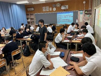 7月13日(水)と20日(水)の総合的な探究の授業では、オープンキャンパスに向けて、質問したいことを整理する「質問づくり」の活動を行いました。グループになり、上級学校で学ぶことができる内容や取得できる資格、キャンパスライフなど様々な角度からたくさんの質問を考えることができました。