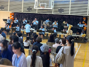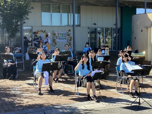 オープニングアクトでは、ジャンボリミッキーとファンファーレ、ステージ発表では、「はじめてのおつかい」コレクションをはじめ、アニメのテーマソングなど、親子で盛り上がっていただける曲を選曲し、披露させていただきました。音楽を通して、地元美里町のイベントに貢献することができ、部員一同うれしく思っています♪