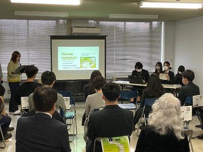 2月24日(土)に美里町中央コミュニティセンターで行われた「地域学習合同発表会」に、総合学科2年生5名が参加をしました。これは町内で地域に関わる活動をしている団体の発表会で、本校以外にも南郷高校やまちづくりワークショップの方々が発表を行いました。