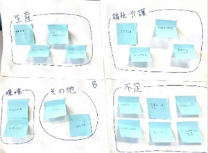 「業界・学問探究」 投稿日時 : 2022/06/23 管理者N カテゴリ: 4月から6月にかけて,2年生の「総合的な探究の時間」で「業界・学問探究」を行いました。これは進学希望者と就職希望者にわかれてグループを組み,それぞれ自分の進路について関心のある事柄を探究するものです。 ①まずは付箋や模造紙を使ってテーマを設定し, ②次にiPadを使って情報収集をし, ③そして思考ツール(考え方を補助するためのツール)を用いて考えをポスターに整理し,発表し合いました。