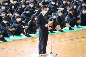 生徒会役員から委員会紹介を行い,小牛田農林高校の委員会活動の活発化について呼びかけました。その後の部活動紹介では,各部の個性が光る実演あり動画ありの紹介となりました。