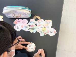 講話の後には,シクラメンと一緒に配っていただくメッセージカードを作成しました。高齢者の方々に喜んでもらえればと思います。