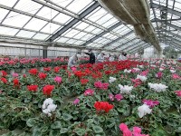 こちらのハウスでは,2年生が葉組の作業実習を行っています。ハウスの中は,色とりどりのシクラメンでいっぱいです。今年は花が大きいようです。
