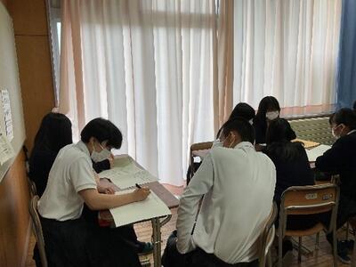7月13日(水)と20日(水)の総合的な探究の授業では、オープンキャンパスに向けて、質問したいことを整理する「質問づくり」の活動を行いました。グループになり、上級学校で学ぶことができる内容や取得できる資格、キャンパスライフなど様々な角度からたくさんの質問を考えることができました。