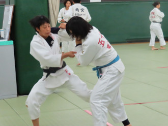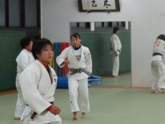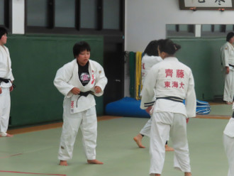 今年の東海大学は,全日本学生優勝大会において15年ぶりの男女アベック優勝を成し遂げたチームです。その優勝チームの女子柔道部の皆さんとエアコンの効いた柔道場で,充実した稽古をさせて頂きました。また,ユニバーシアード大会(イタリア・ナポリ)の女子57gkで優勝した部員もおり,生徒達と稽古をしてくれました。
