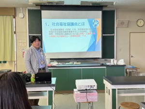 11月15日(金)に農業科学コース草花専攻班3年生10名は大崎市社会福祉協議会松山支部の職員の方に来校していただき、「歳末たすけあい募金事業」について講話をいただきました。