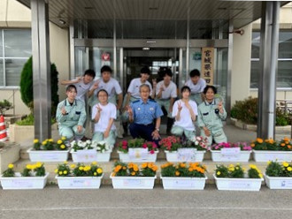 また,遠田警察署には,生徒が自分たちで書いたメッセージカードを取り付けたプランターを寄贈しました。