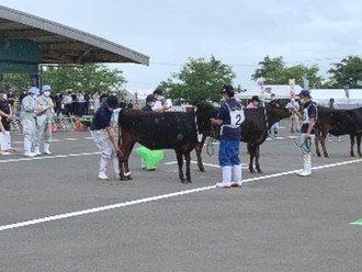 7月8日(金)・9日(土)に,みやぎ総合家畜市場にて第12回全国和牛能力共進会鹿児島大会の宮城県予選が開催されました。農業大学校・高校の部に本校から「わさび号」を出品し,見事,鹿児島大会への宮城県代表牛となりました。応援ありがとうございました。10月に開催される全共鹿児島大会に向けて,「わさび号」の手入れと調教を頑張ります。