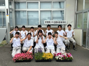 科学コース草花専攻班の3年生が7月1日(月)に東北自動車道長者原サービスエリアの花壇、2年生が7月3日(水)に小牛田駅の花壇に植栽に行きました。