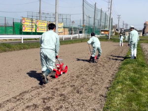 4月14日(火)に農業技術科・作物部門の3年生が乾田直播を行いました!