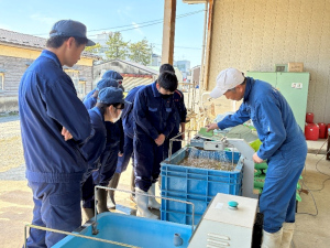 この日は2年生が作物部門での初めての実習でした。催芽機の使い方などを説明してもらいました。