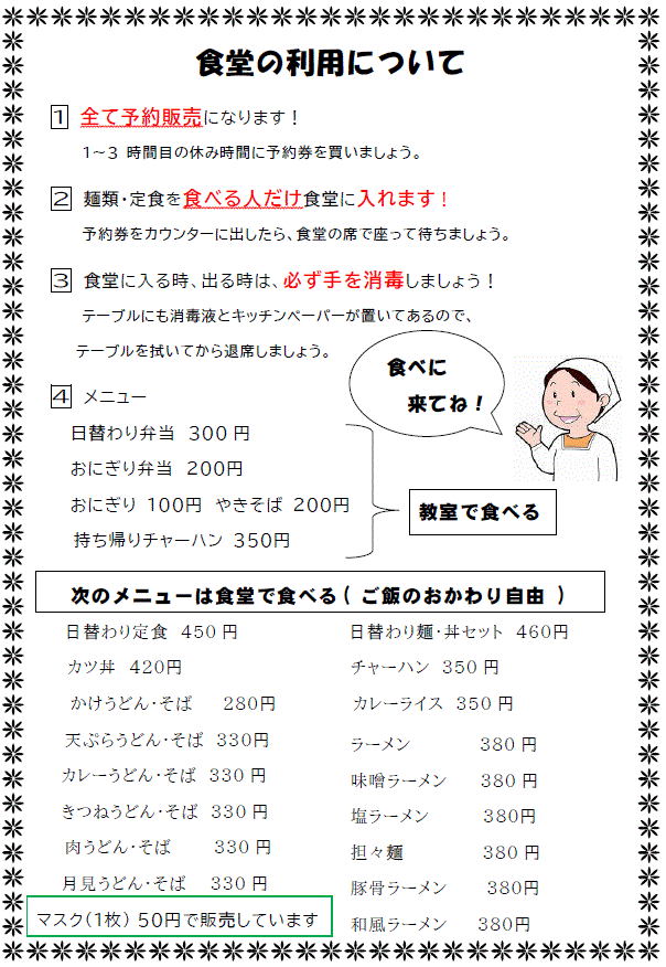前を向いて自分の席で食べます