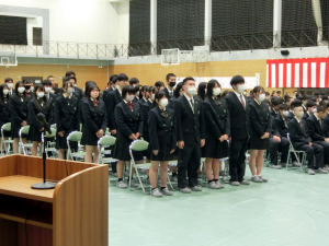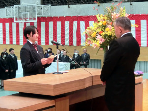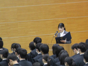 式では各クラスの担任が新入生一人ひとりの氏名を呼名したのち、学校長より入学許可の宣言がありました。また、在校生による校歌披露が行われ、新入生は小牛田農林の伝統と文化を感じることができました。
