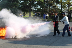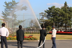 今回の訓練は,火災を想定したもので,初期消火の訓練も実施されました。