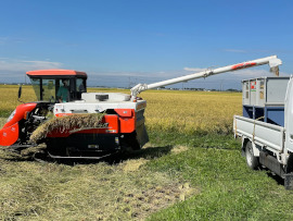9月22日(水),美里町青生にある圃場で稲刈りを実施しました。今回は農場の先生方が稲刈りを行い,稲刈り後にはサイレージ作りにも取り組みました。