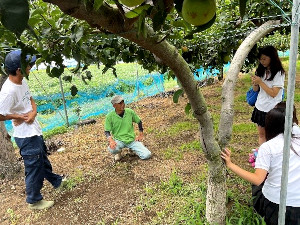 廃棄される北浦梨を有効に活用しようとする班は町内の梨農家の方を訪問し、インタビューを行いました。また、子どもの体力低下について探究している班は、不動堂放課後児童クラブで行われたイベントに参加し、子どもたちの活動の様子を見学しました。