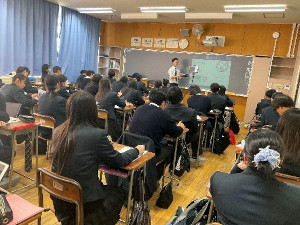 10月8日(水)6校時のLHRにて「令和7年度大崎耕土講演会」として、大崎地域が有する地域資源の豊かさとSDGsとの関わりを理解し、深める目的で、大崎市役所産業経済部より講師を招き、講演をいただきました。