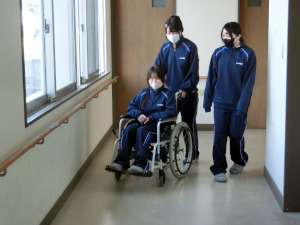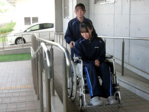 生徒たちからは、「以前から祖母の車椅子介助のお手伝いをしていて、今回安全面など細かなことを学ぶことができてためになって、楽しかった。」「段差など車椅子が揺れるときには、声がけをしたり、相手のペースに合わせて車椅子のスピードを調整したりすることが大切であることを知った。」などの声がありました。
