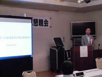 平成28年7月23日(土)に小牛田駅前の寿会館で第8回紫雲会総会が開催されました。約100名の同窓生の参加のもと,経過説明,役員選出,第9回総会の開催について協議されました。また,後藤徳男 氏(S48.3卒 (株)丹野測量設計)からは「東日本大震災における宮城の農業農村の復旧復興状況」について御講話をいただきました。 東日本大震災からの復旧・復興にあたっては,多くの同窓生が農業土木技術者として農地や農業施設の整備事業に携わっています。 次回の開催は東京オリンピックの年の2020年7月を予定しています。